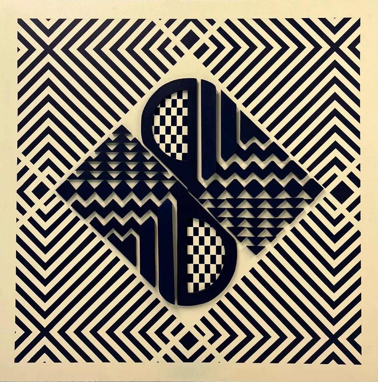 Colors like beige, prevalent in advertising, and a muted blue nod to propaganda aesthetics of the time. Geometric shapes establish an optical illusion through rhythm, repetition, and movement, evoking a sense of order while forging a connection to the past through a modern lens.