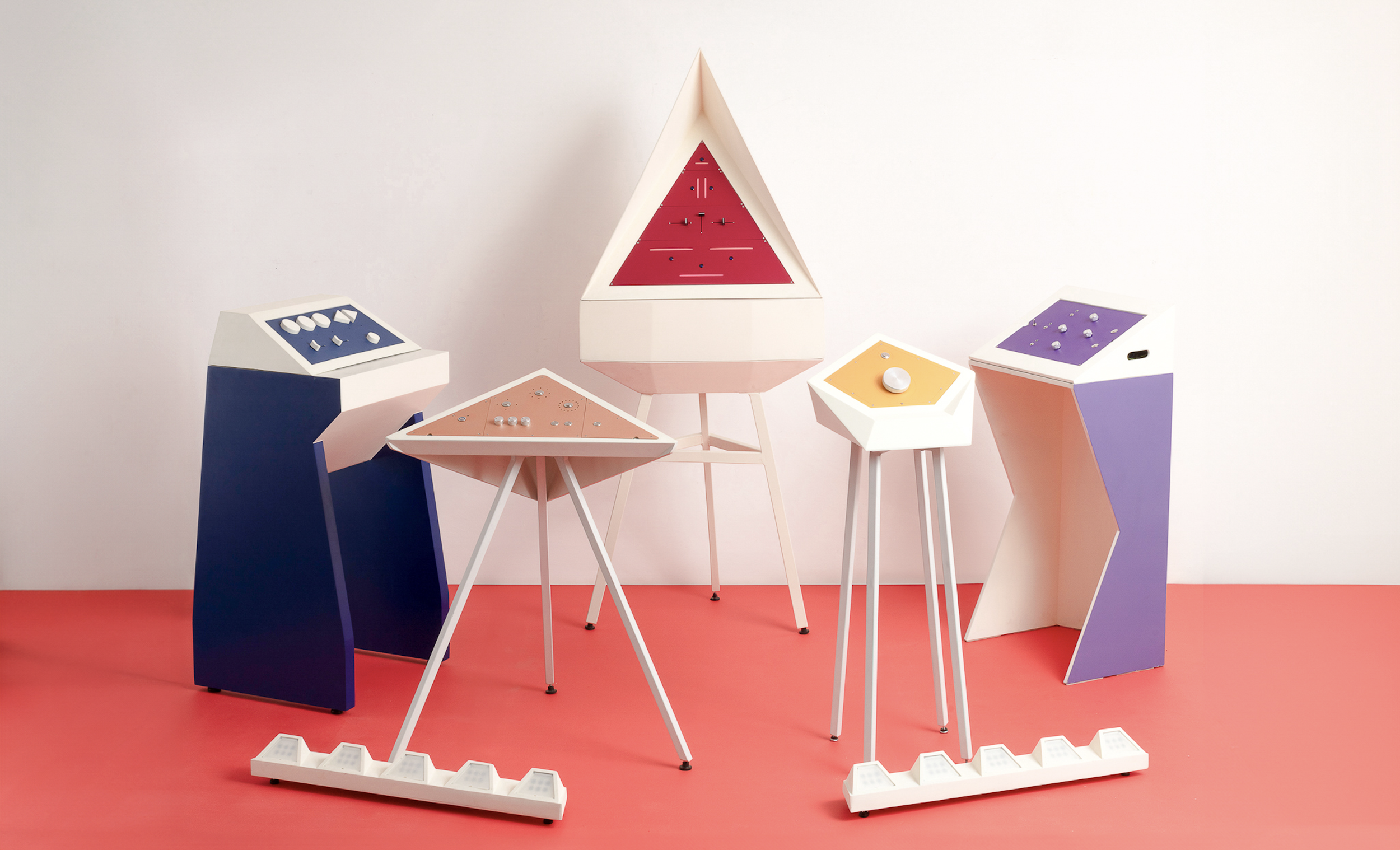 Its shape is based on the pentagon and a control pillar of a spaceship. The project was done with the help of the Bela controller and Arduino, generating a series of completely random notes to generate the music.