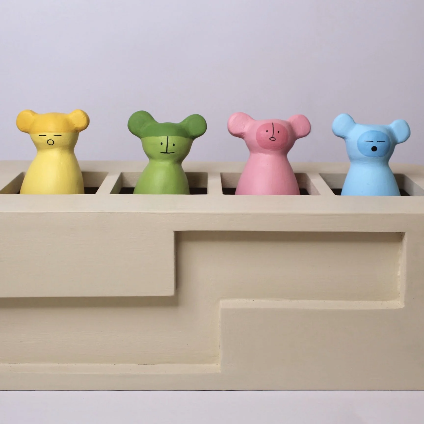 Interactive toy for cats that seeks to reinforce the relationship between owner and pet through the mental estimulation of the animal. Combining the aesthetic of the Modern movement, specifically the Villa Savoye house by Le Corbusier and elements from Alexander Girards designs.